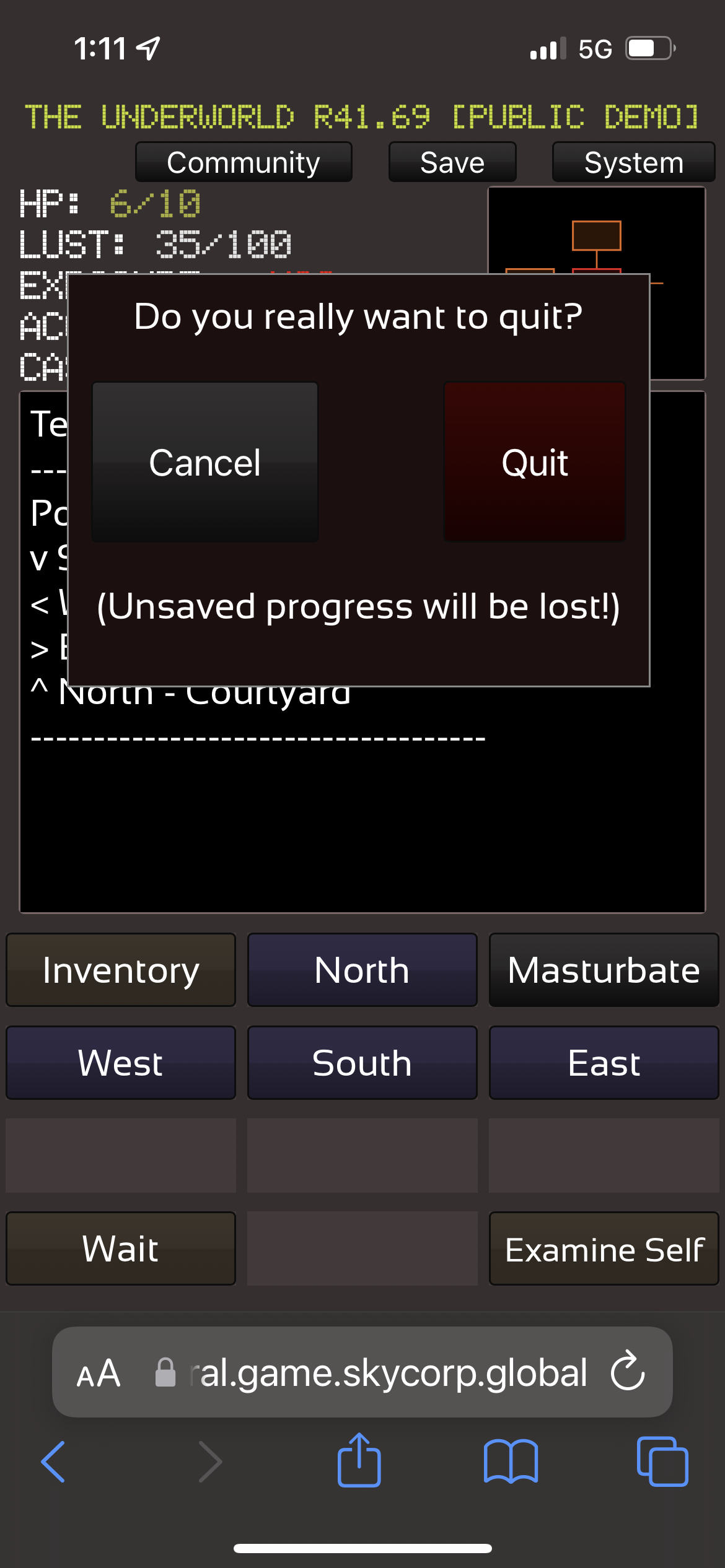 | Description | I explained that I had an issue where if I was in the middle of a game, and I wanted to quit to go back to the main menu to change where I wanted to load in a different state, the Quit button wont execute its programmed function(“broken”). This seems to happen on any browser on iOS. As for Android, I do not know | ||||