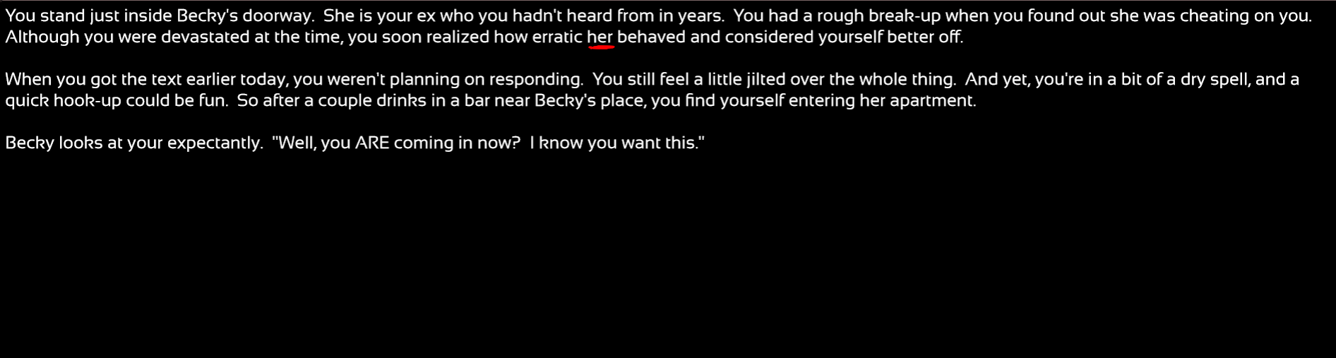 | Description | When you first start and make out with your ex and you talk about how erratic her behaved. it should be she behaved. | ||||