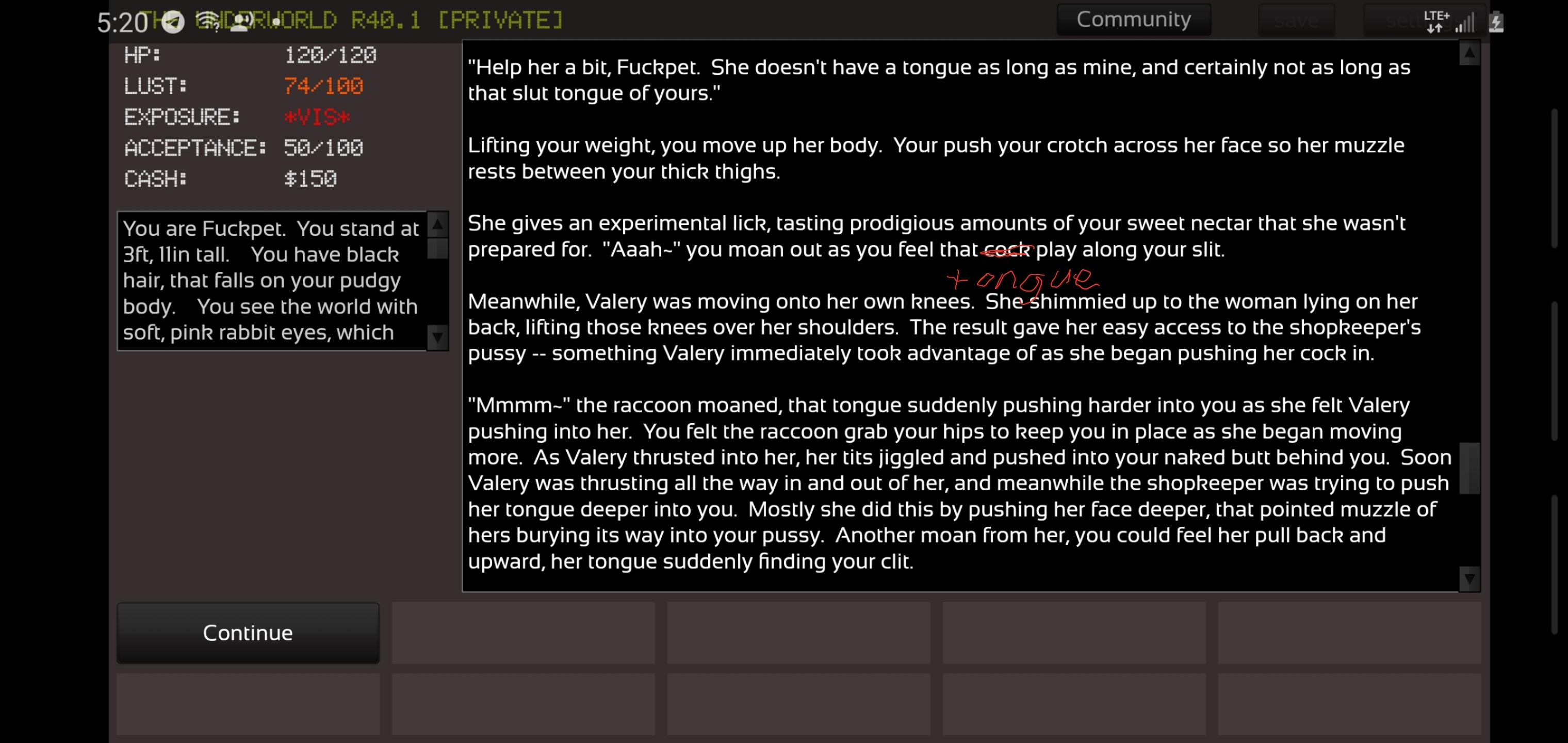 | Description | Should be tongue instead of cock; see screenshot | ||||